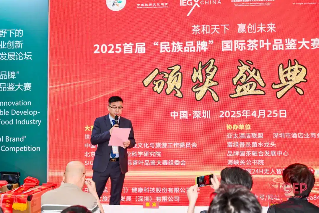 At the award ceremony, Wu Honghua, Director of the Culture and Tourism Working Committee of the China National Trade Promotion Association, spoke at the 2025 SIGEP China Shenzhen International Dessert Exhibition and the “National Brand” International Tea Tasting Competition Award Ceremony:
